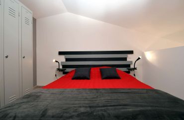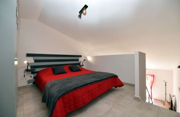 Point fort : Chambre en mezzanine composée de lits jumeaux en 80*200 configurables en lit Queen size 160*200.